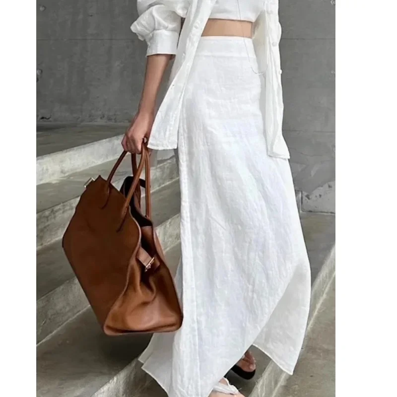 • White linen maxi skirt: crisp, fresh, and timeless