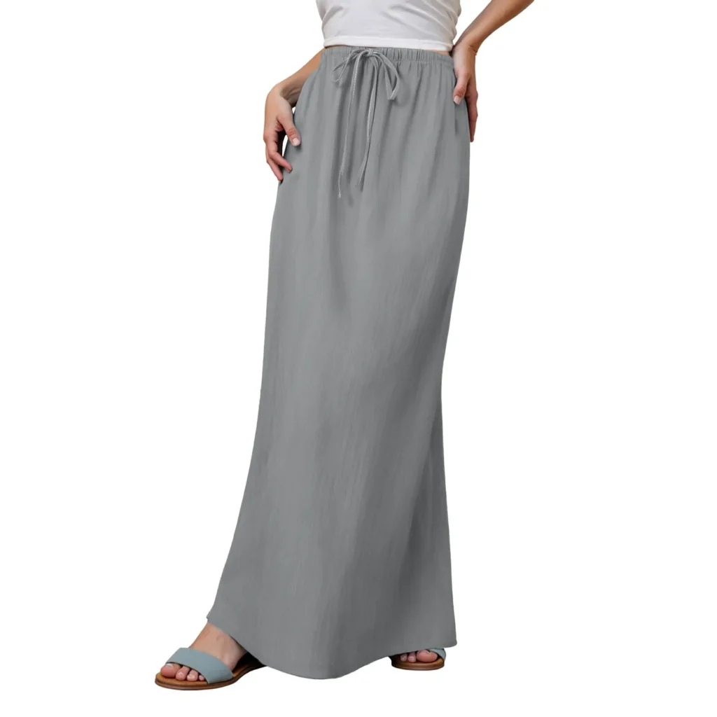 • Linen Maxi Skirts: Among all styles, linen maxi skirts remain the most versatile and widely embraced. Their flowing construction allows air to circulate freely, making them particularly comfortable in warm weather. At the same time, their length and natural drape create an elegant appearance that can easily shift from casual to more refined settings. These skirts adapt well to relaxed daytime outfits, vacation wardrobes, and even semi-formal occasions when paired with structured tops or minimalist accessories. Best for: summer outfits, travel, everyday wear
